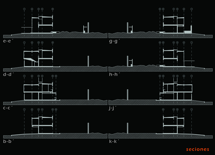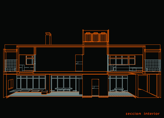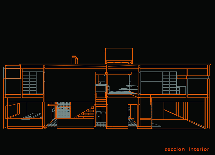 La casa se contiene por medio de una serie de muros que protegen los espacios habitables del exterior urbano. Estos muros se convierten en el bloque de servicios y se abren gradualmente hasta los espacios habitables. Los espacios habitables se abren hacia el jardín tanto en planta baja como en planta alta. El jardín se encuentra dividido en dos áreas; un bosque denso con la vegetación existente, y una plataforma vacía con pasto. En el jardín se genera una topografía para ocultar los automóviles y elevarlo en la parte sur hacia la recámara principal en la planta alta.