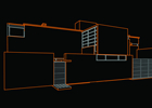 La orientación de la casa seria franca hacia el oriente, protegida del poniente por el bloque de servicios. En la planta alta un tragaluz que separa los espacios habitables del bloque de servicio permitiría tener entrada de luz sur a lo largo de las recámaras y el cuarto de TV. La sala y el cuarto de TV tendrían iluminación poniente en las tardes por medio del patio de helechos.