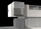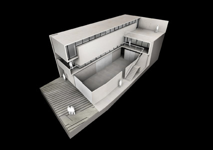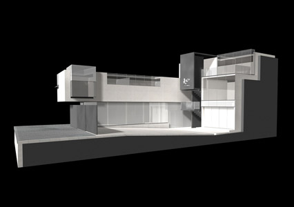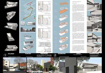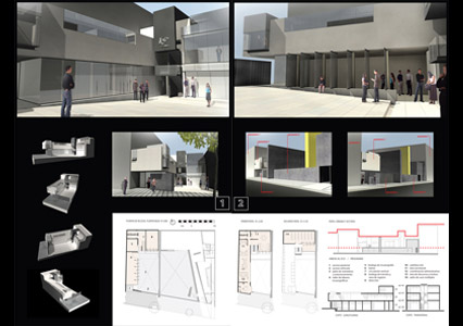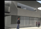 Debido al impedimento de perforar este muro, consideramos importante que exista una relación visual entre el flujo que circulará a través de la vía pública y del nuevo edificio. Producto de esta preocupación, la oficina principal estará localizada en un punto estratégico, de donde se distinguirá el movimiento de las piezas al museo existente, el espacio del patio y la totalidad del nuevo edificio.