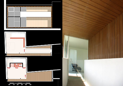 Invertimos el esquema: dos habitaciones, un baño completo que sirve de iluminación interior, un puente que conecta con la habitación principal y una nueva terraza son el resultado del nuevo diseño.