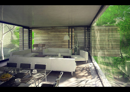 La casa se encuentra localizada en el terreno que forma una de las partes mas hondas de la cañada de la Cerrada del Carmen. Esto provoca que la vista del condominio hacia la nueva edificación sea casi siempre de arriba hacia abajo. Con el propósito de no irrumpir en la vegetación, esta edificación propone una techumbre verde.