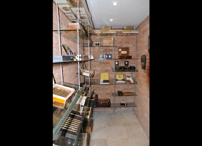 En el espacio se diseñó una fuente que funciona con agua destilada con el propósito de que actúe como el humidificador que toda caja de puros necesita para mantener el ambiente en condiciones óptimas.