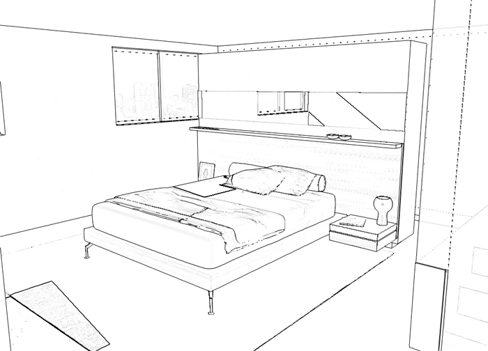 La continuidad espacial será la que determine el diseño de los espacios integrando las funciones de cada sitio y generando una continuidad de material entre pisos, muros y techos conteniendo cada espacio como parte de un todo donde ubicaremos piezas aisladas como mobiliario específico de cada sitio.
