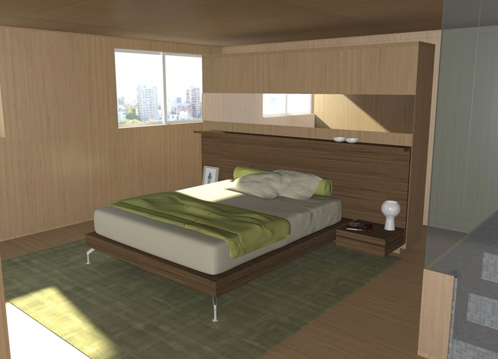 El proyecto final se plantea como el resultado de la modulación y aplicación de los materiales a cada zona específica tratando de mantener una continuidad de planos al integrar el espejo de agua en la sala y las repisas de cristal transparente o bien cuando los closets de la zona privada se convierten en el paño final de la envolvente del propio espacio.